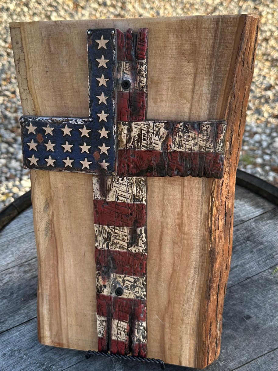 At Bikers And Beaches, we offer unique items that reflect American spirit. Our Patriotic Cherry Wood American Cross Plaque, made from high-quality cherry wood, is a masterpiece of patriotism. Its rich hues and craftsmanship make it a standout decoration and symbol of national pride. Enhance your space with this exclusive creation from our local business.